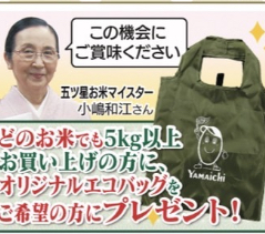 インターネット販売開始お米マイスターが伝えるお米のトリセツお米のヤマイチでは 4月8日よりネット販売を開始いたしました。 現在の配達可能エリアは 川崎市宮前区・高津区・麻生区・多摩区 横浜市青葉区 です。 どうぞ、ご利用いただき 美味しいお米をお召し上がりください。 ※5kg以上お買い上げの方に オリジナルエコバックをプレゼント いたしております※